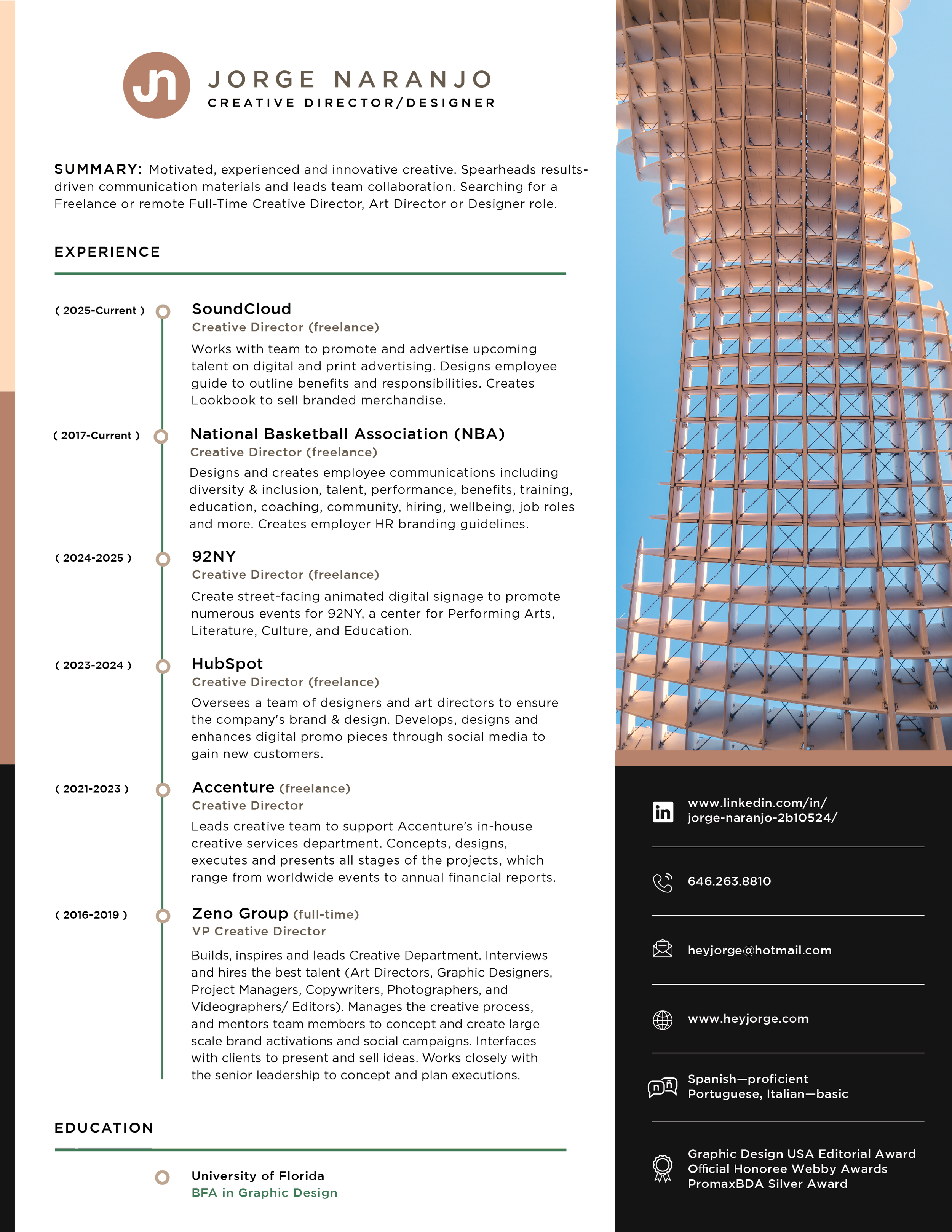 A: I am a Creative Director with 20+ years of experience. The type of projects I work on have a wide range; web/digital design, video creation, promotional, advertising, branding, editorial, presentations, etc.